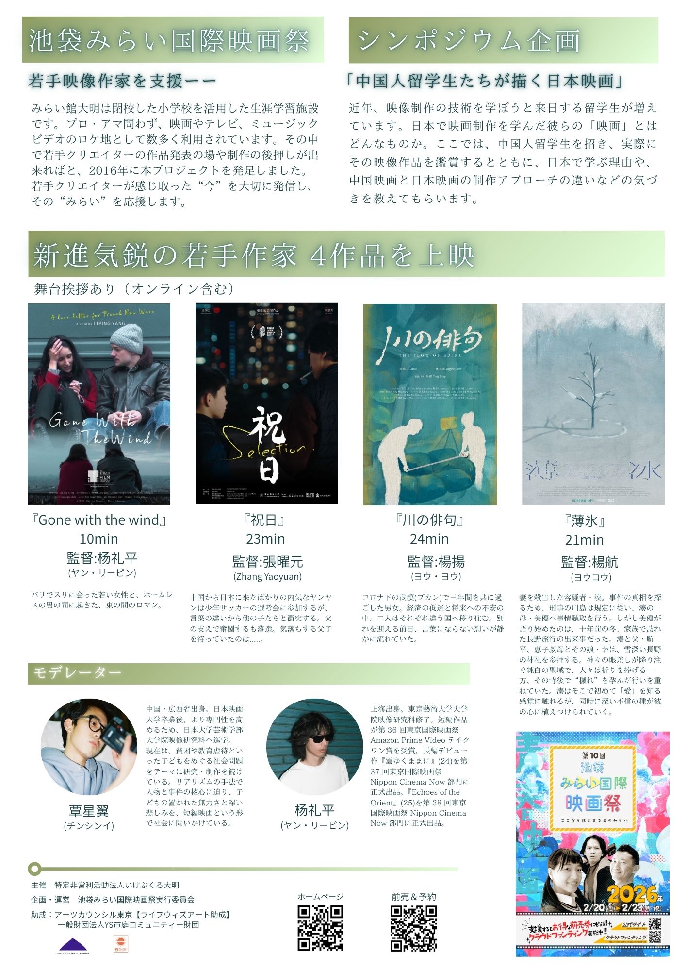 さて、このプログラムは、[中国]からの留学生が[日本の映画制作のノウハウ]を使って撮影した作品の上映とクロストークを行います。中国人による日本映画。なんとも興味深い!!!